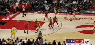 里夫斯进攻得手,双方来到120平,最后一攻湖人拥有球权。詹姆斯弯腰拿球就突破,这次进攻很可能一举两得,既让自己得分上双,纪录继续,又很有可能亲自完成绝杀。但是詹姆斯看到猛龙队全员收缩,放掉了左底角的八村,他毅然决然的把球传了后者,八村也没有辜负老詹的信任,命中了绝杀三分。
