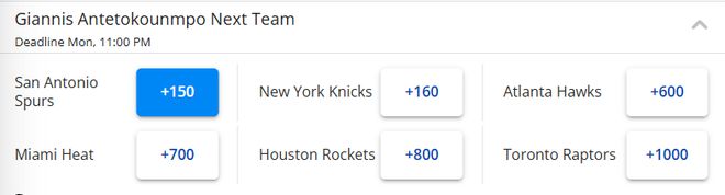 字母哥下家赔率突变!马刺超越尼克斯成为头号热门 火箭排名第五
