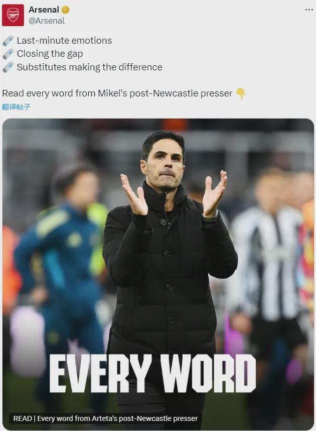 阿尔特塔说阿森纳得到了应得的结果,这次我完全同意,从场面、判罚和表现来看,阿森纳都配得上胜利,这场如果平局或者输球,才真是意难平,这场阿森纳就该赢!至少漏判一个点球。